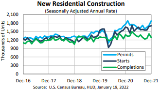 December multifamily starts surged 13.7% to 524,000, while single-family housing starts declined 2.3% from November’s revised estimate to 1,172,000, the U.S. Census Bureau and the U.S. Department of Housing and Urban Development said in a press release.