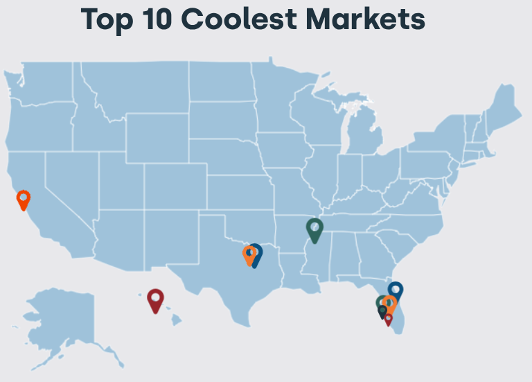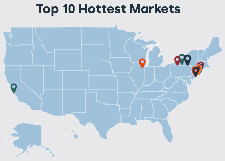 Indeed, the Northeast led the way in price growth, with all but two of the top 10 hottest markets located in New York, New Jersey and Connecticut. On the flip side, most of the 10 coolest markets were in the Sunbelt, with Florida claiming five of them.