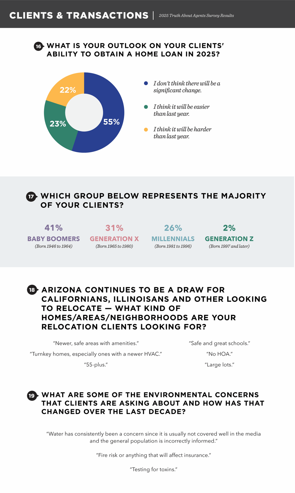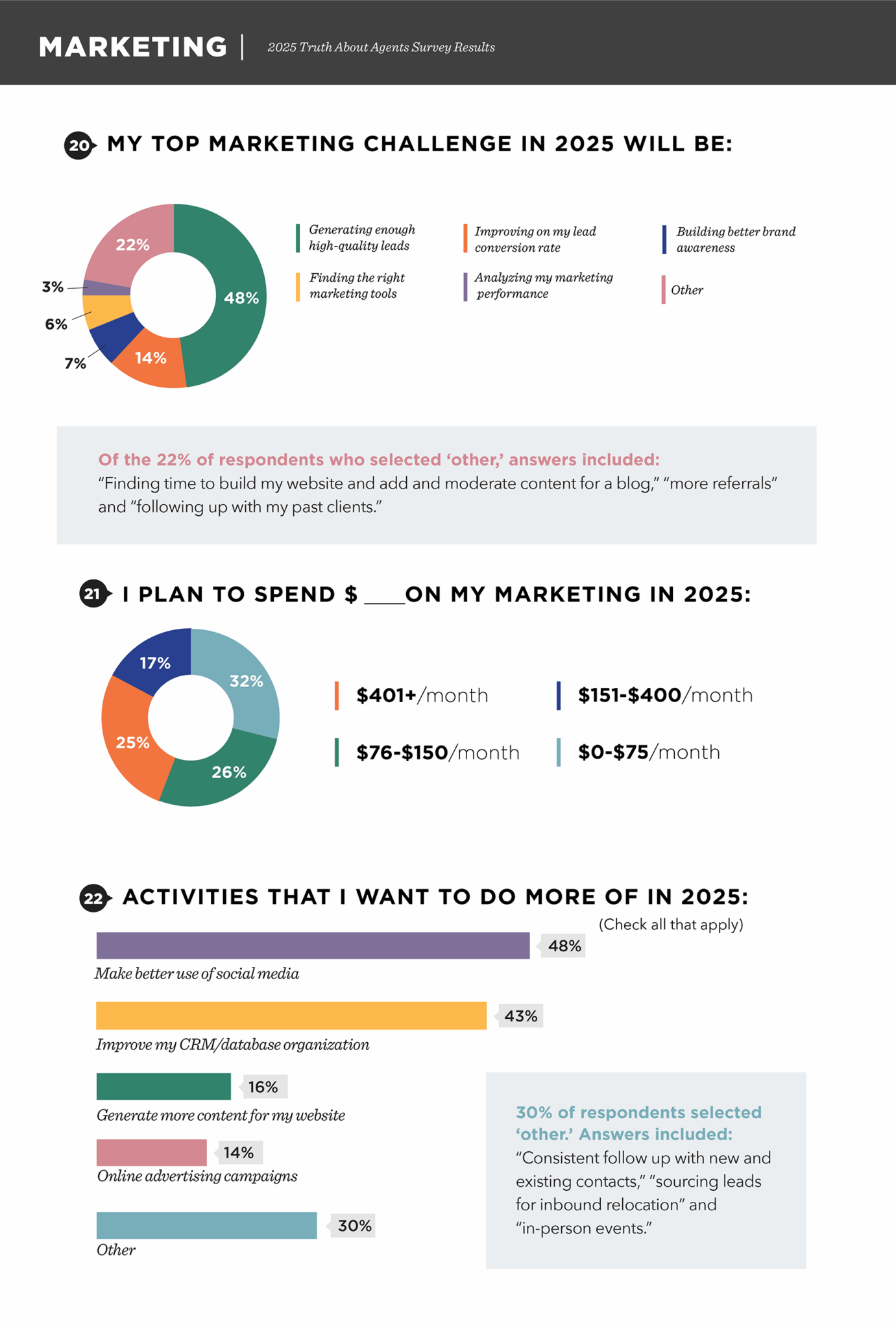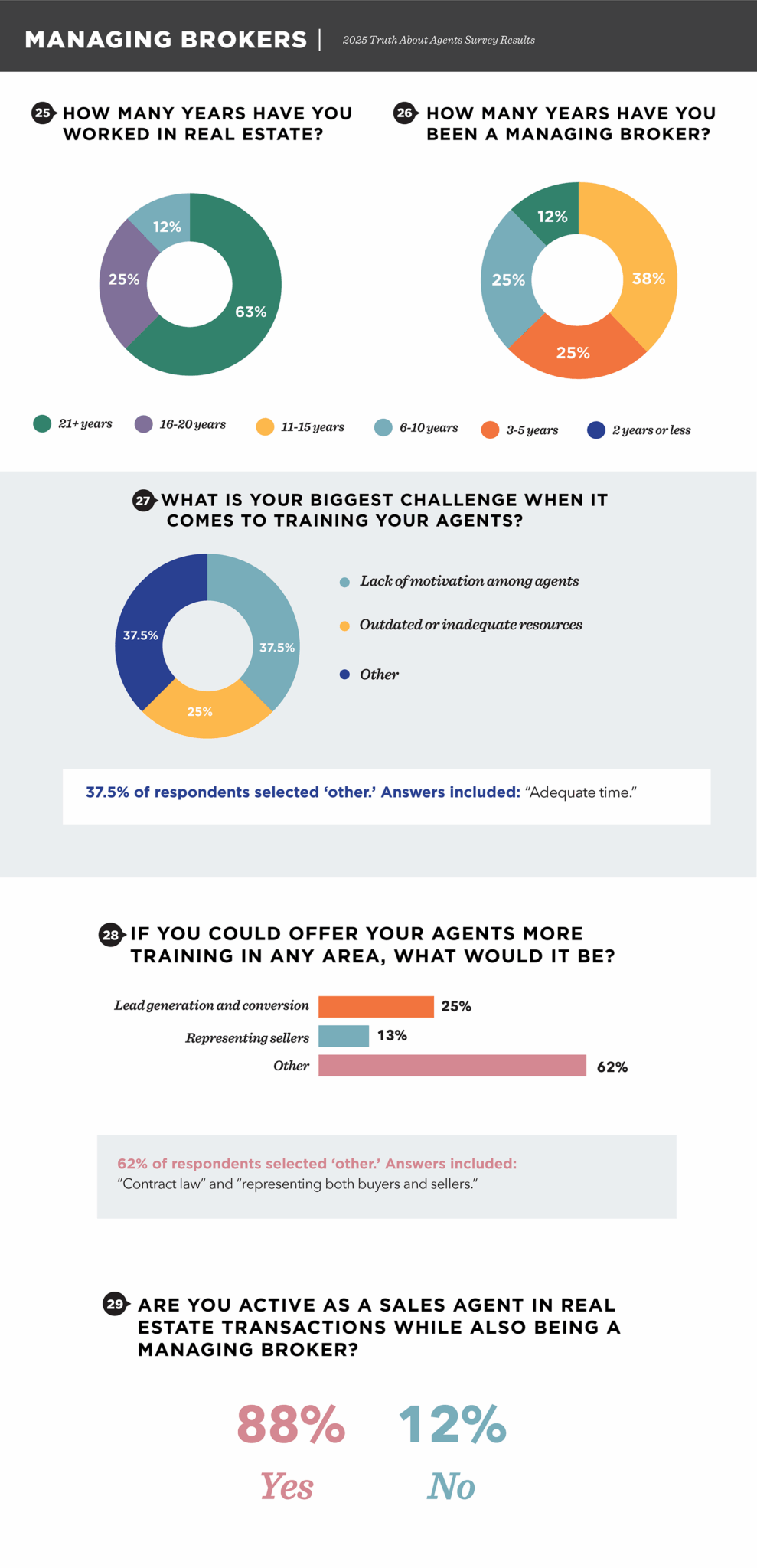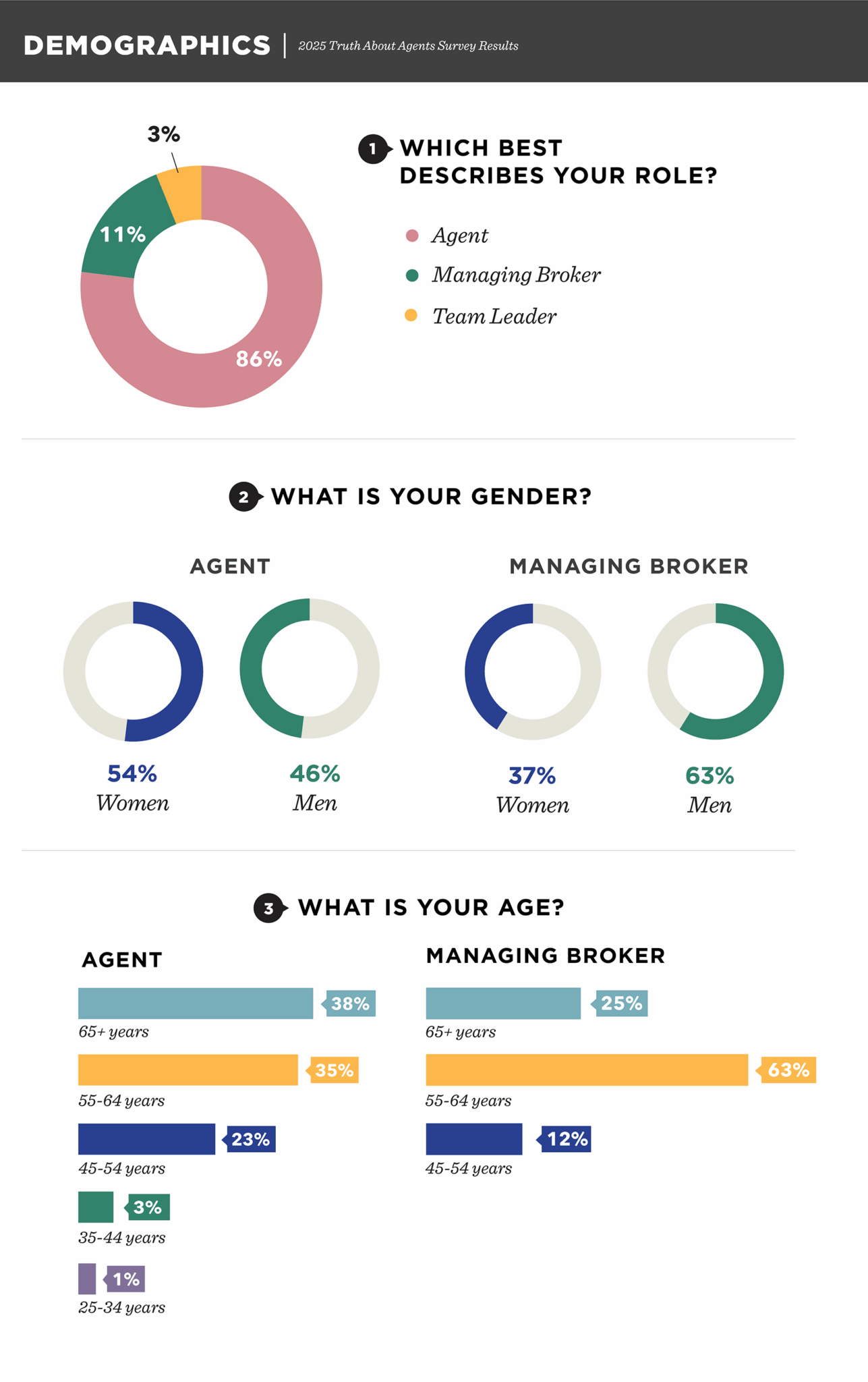 Check out our findings on: Income | Career | Training | Marketing | Demographics | Clients and Transactions | Managing Brokers | Real Estate Teams | New Construction | Artificial Intelligence