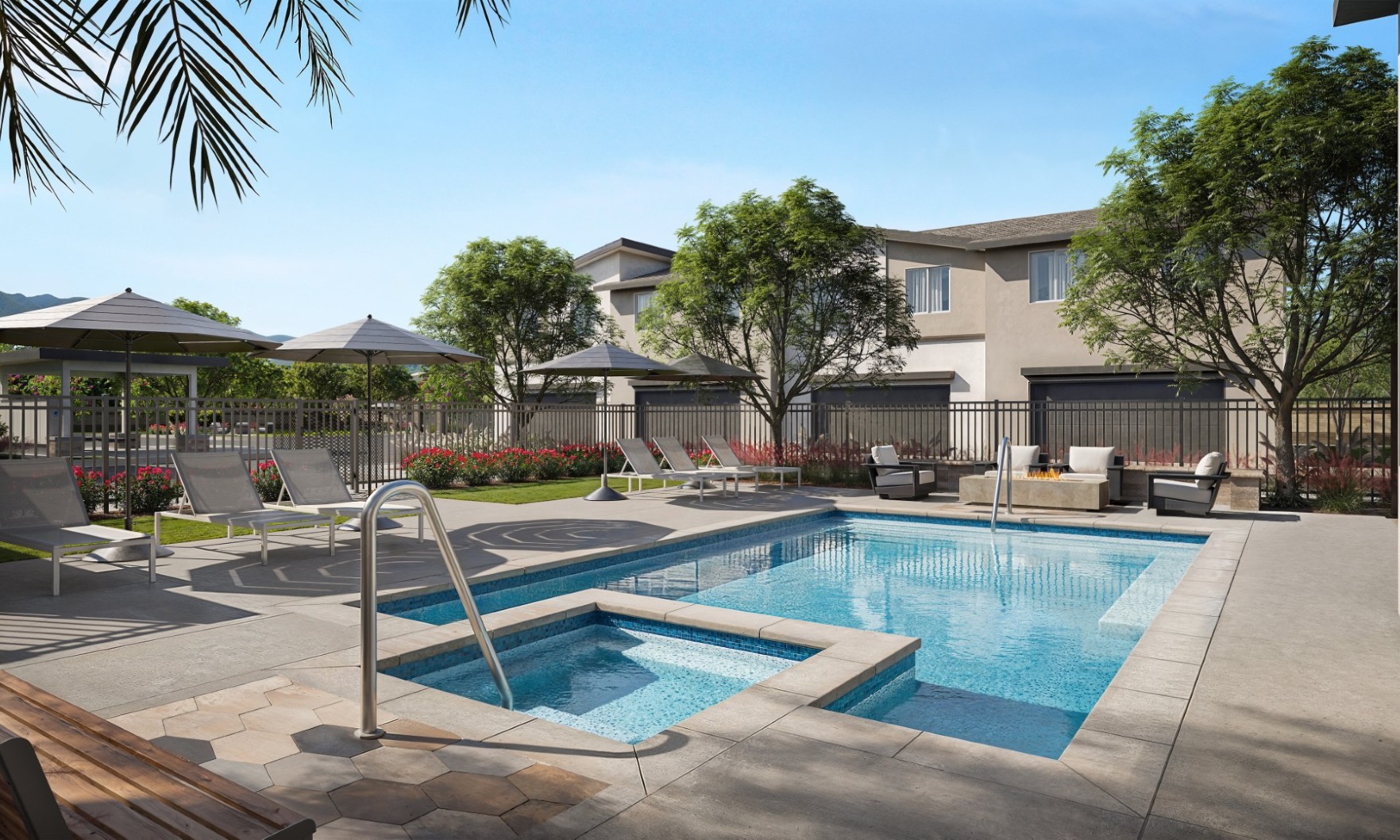 Residences have access to on-site amenities like a pool, hot tub, dog parks, barbeque areas and green spaces.