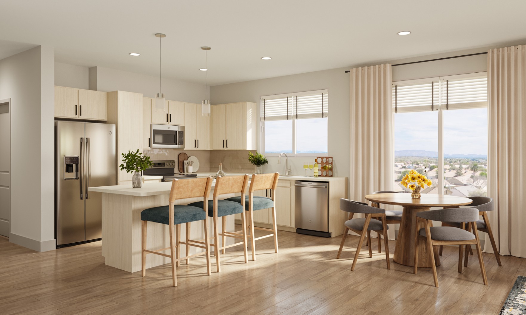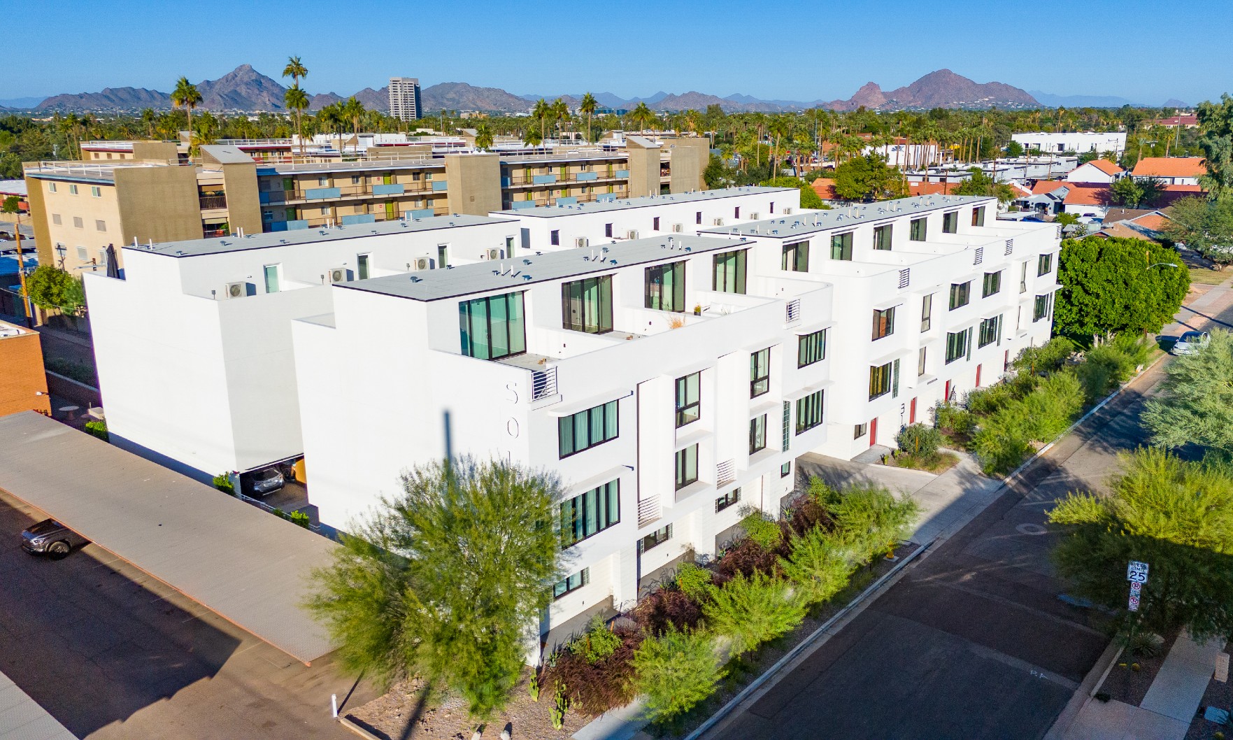 Townhomes utilize the “brise-soleil” technique, which deflects sunlight and reduces heat in the home.
