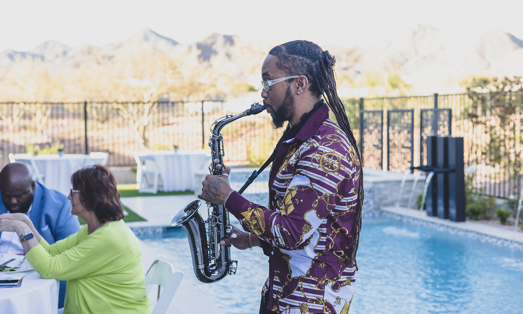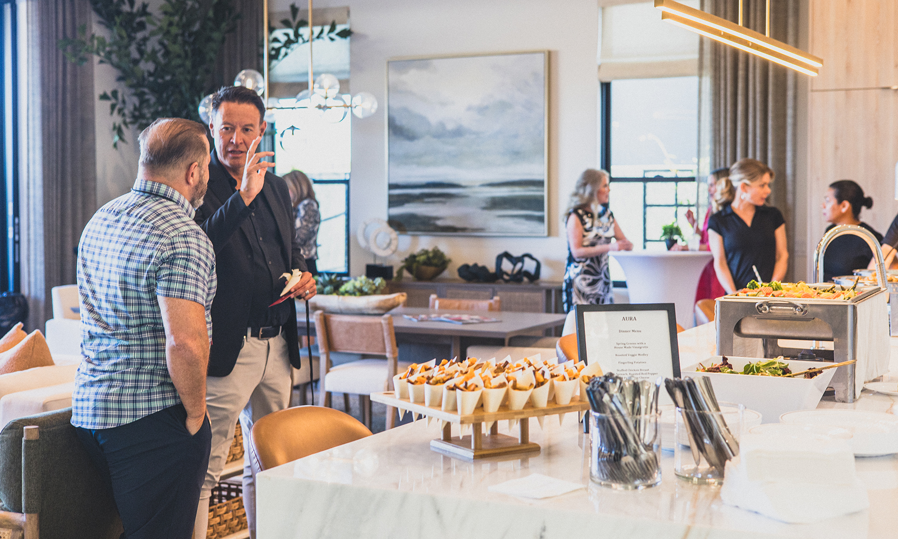 Attendees mingled and networked while indulging in the signature drink of the evening and enjoying the sounds of smooth jazz from a saxophone player.